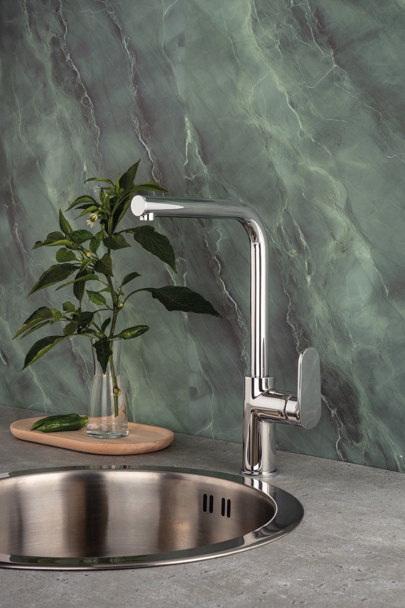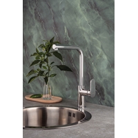 Évier bec haut rond •ALG308 •Bec orientable à 360° •Cartouche à disques céramique, diamètre 35 mm •Débit: 12 l/mn sous 3 bars •Raccords flexibles F 3/8'' •Diamètre de perçage : 35 mm •Saillie du bec: 250mm •Epaisseur du plan de travail :70 mm maximum •Livré avec cale de... En savoir plus »